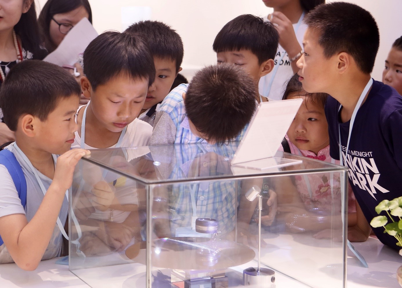 在IC专业工程师的带领下,小朋友们第一次探索了微电子科学的大世界,亲眼目睹了芯片“卸妆”(未加封装)后的“素颜”,了解了沙子如何到芯片的华丽“变身”。